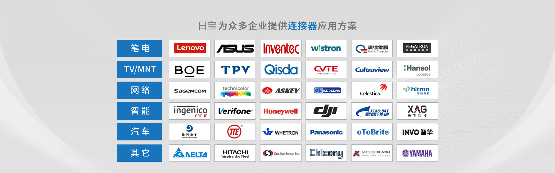深圳市日寶電子科技有限公司創(chuàng)立于2015年,總部位于蘇州吳江區(qū),總部公司成立于2005年,是一家專業(yè)從事精密連接器設(shè)計、制造及銷售的高新科技企業(yè)。產(chǎn)品廣泛應(yīng)用于消費電子、汽車電子、網(wǎng)絡(luò)通訊及工業(yè)電子設(shè)備、軍工、航天航空、醫(yī)療器械等領(lǐng)域。目前公司產(chǎn)品除本土市場外,更遠銷歐、美、日等海外市場。 日寶電子注重長遠發(fā)展,先后取得ISO9001/14001質(zhì)量與環(huán)境管理體系、IATF16949汽車質(zhì)量管理體系、ISO13485醫(yī)療器械質(zhì)量管理體系、UL,GB/T29490知識產(chǎn)權(quán)管理體系等認證, 并加入HDMI、USB等協(xié)會。 為提升企業(yè)核心競爭力,公司大力推進信息化與工業(yè)化的兩化融合建設(shè),先后導入ERP、PLM、CRM、SRM、MES及OA等系統(tǒng)管理軟件,不斷自我提升,為打造新一代智能制造標桿企業(yè)不懈努力。 日寶電子擁有業(yè)界專業(yè)的電氣與機構(gòu)研發(fā)技術(shù)團隊,相繼獲得260余項發(fā)明和實用新型專利,在這日新月異的科技時代,堅持以技術(shù)創(chuàng)新為導向,深度服務(wù)客戶...